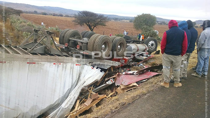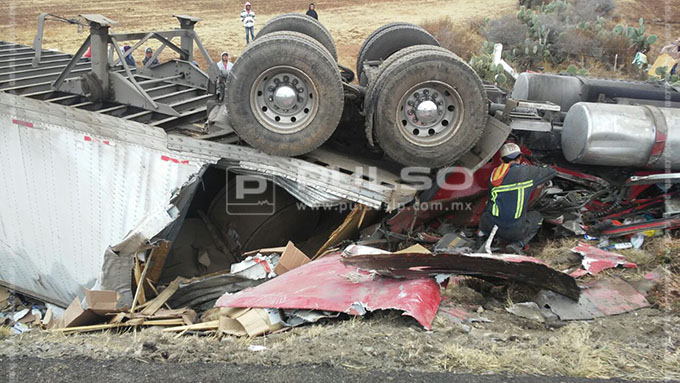 La mañana de este jueves el conductor de un tráiler que transportaba mensajería murió aplastado por la unidad que guiaba, tras volcar en la carretera de cuota San Luis- Villa de Arriaga, que une la carretera a México (‘57) y la rúa a Guadalajara (’80).