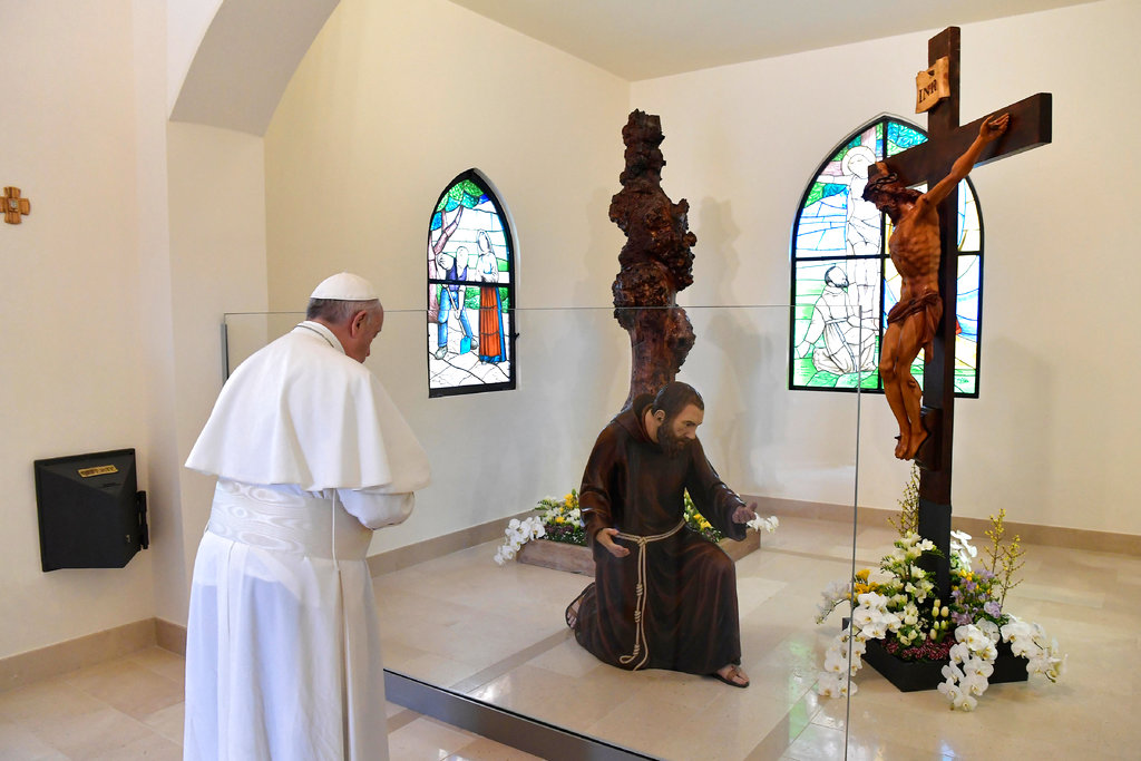 Francisco realizó la visita de medio día al cumplirse el 50 aniversario de la muerte del santo y el centenario de la aparición de los estigmas, un fenómeno que, se dice, le causó grandes sufrimientos físicos en vida.