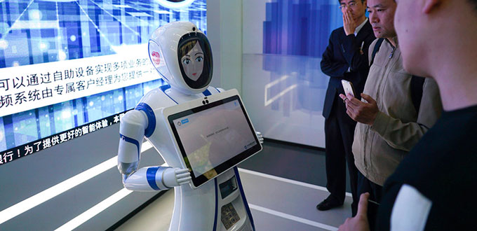 Un banco propiedad del gobierno chino abrió una sucursal automatizada que está equipada con software de reconocimiento facial, una sala de realidad virtual, una máquina de hologramas, robots parlantes y pantallas táctiles para pagar cuentas de servicios públicos y cuotas del Partido Comunista, entre otras funciones.