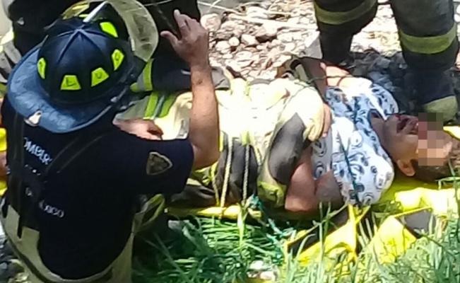 En un video difundido en redes sociales, se aprecia el momento en el que tres bomberos descienden al barranco para rescatar al hombre, quien sufrió heridas leves.