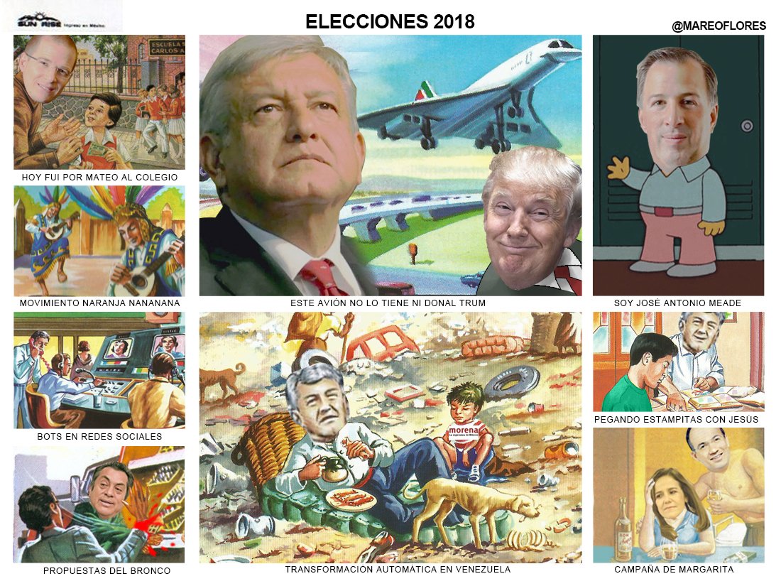 Estas son las viñetas de las elecciones 2018, o al menos así las ve Mario Flores ilustrador, quien este viernes publicó una monografía al estilo escolar que refleja su sentir sobre las campañas.