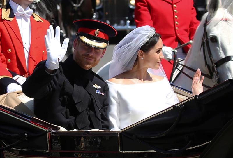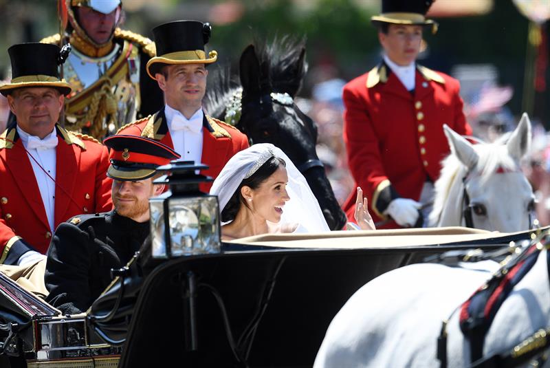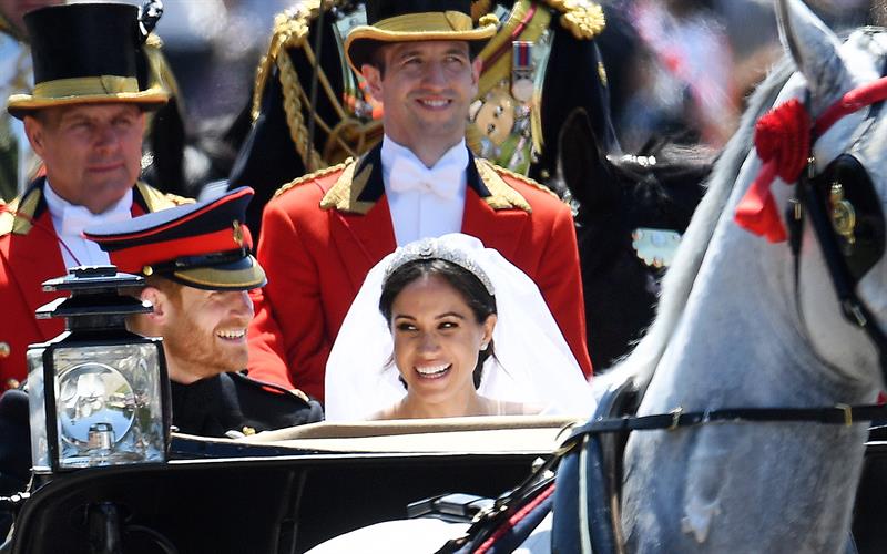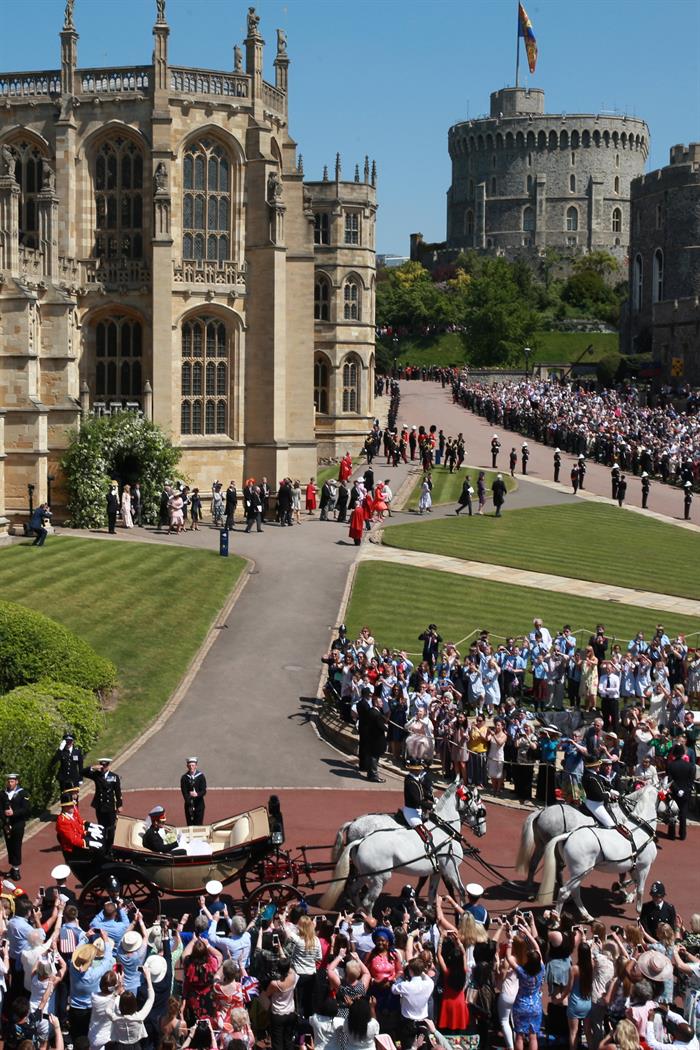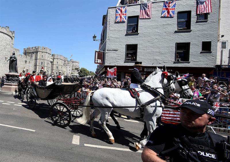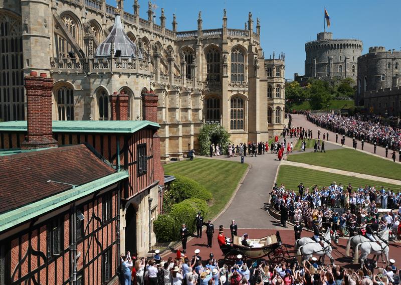 Tras la ceremonia religiosa, que concluyó minutos después de las 13:00 horas locales, los Duques de Sussex abordaron desde el castillo de Windsor el carruaje Ascot Landau, de 1883, que fue jalado por caballos blancos hacia la calle principal del pueblo de Windsor.