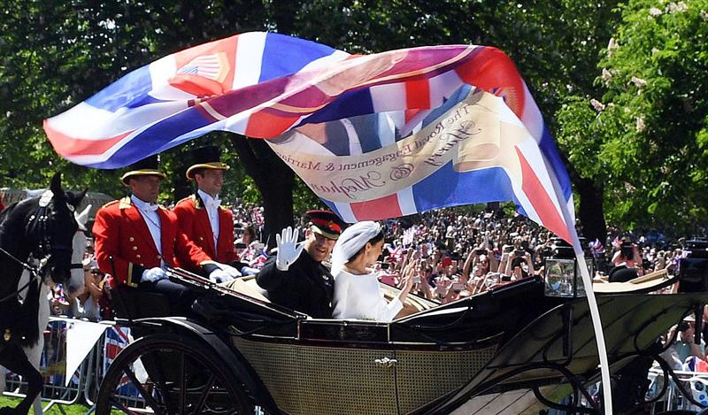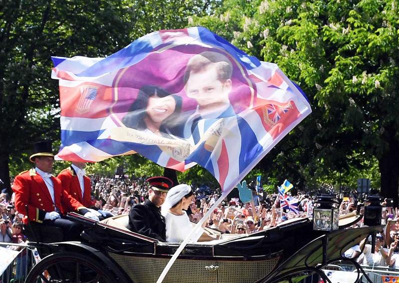 Miles de personas inundaron las calles y los parques públicos del poblado de Windsor para presenciar el recorrido en carruaje del príncipe Enrique y Meghan Markle, que a partir de hoy llevan el título de Duques de Sussex.