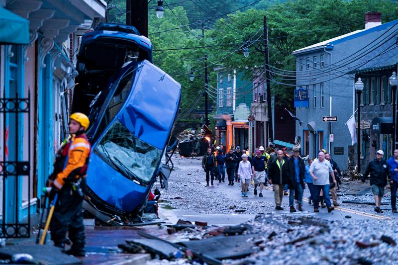 Se trata de la segunda inundación catastrófica que golpea a la ciudad, de 65 mil residentes y ubicada a unos 60 kilómetros al norte de Washington, D.C., luego que aguaceros similares inundaron a esa urbe en 2016.