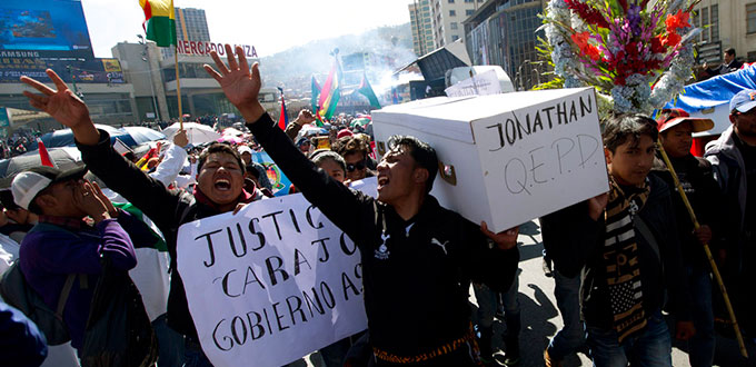 La muerte de Quispe derivó a una multitudinaria marcha de universidades públicas en la mayoría de las ciudades de Bolivia el lunes.