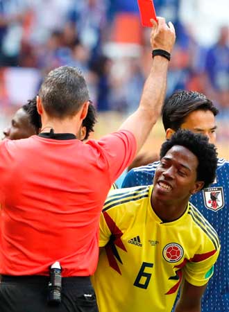 BOGOTÁ (AP) — Las autoridades colombianas investigan una amenaza de muerte hecha en las redes sociales contra el mediocampista Carlos Sánchez, expulsado tras cometer una mano en el área en la derrota que la selección de Colombia sufrió ante Japón en su debut en la Copa Mundial.
