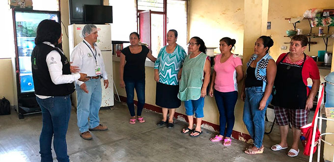 Por parte de la COEPRIS ya se realiza monitoreo de cloro en el depósito de 40 litros 2.0 ppm, agua de red 0.0 pmm, por lo que se acude con el encargado del sistema de agua, además de que se otorgan 10 frascos de plata coloidal, asesoría de manejo higiénico de los alimentos, conservación de los alimentos, desinfección de frutas y verduras, cloración del agua, buenas prácticas de higiene y técnica adecuada de lavado de manos.