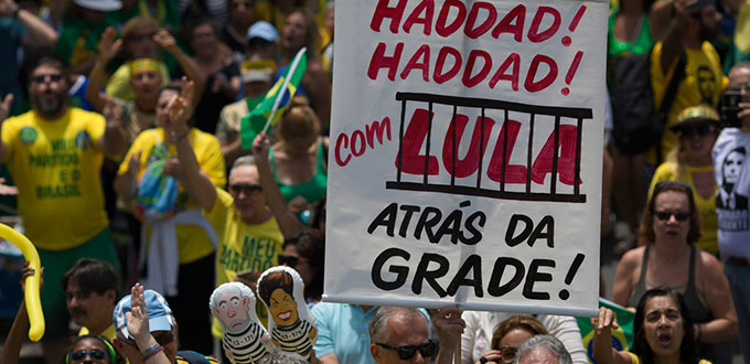 «La corrupción es una plaga que saca la comida de la mesa, que saca a los niños de la escuela» e impide el desarrollo de un país, afirmó un locutor en el espacio de Bolsonaro, en el cual se reiteró que Haddad «fue a la cárcel a pedir la bendición de Lula» para ser candidato.
