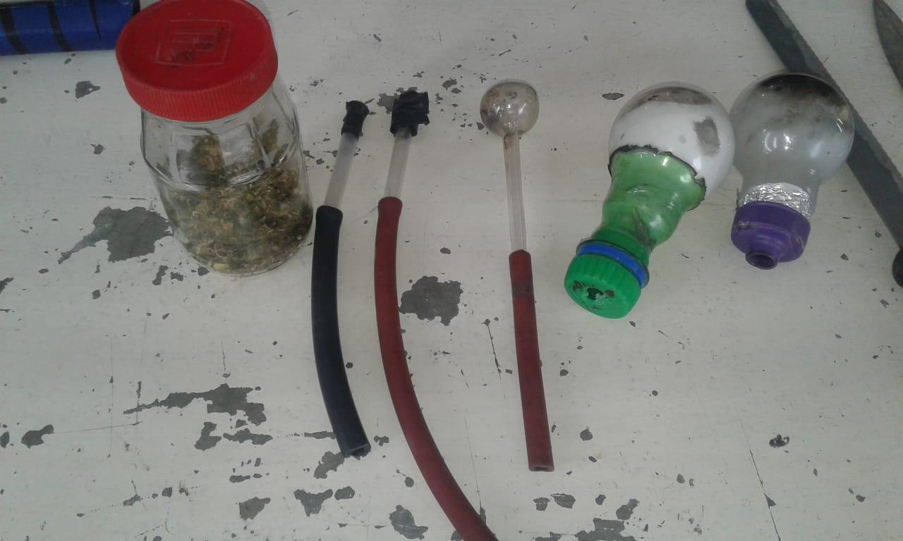 En el lugar se generó un conato de riña que terminó con la detención de un joven de 17 años; al ser revisado se le encontró en el interior de una mochila 7 cuchillos de cocina, un frasco con vidrio con hierba en su interior con las características de la marihuana, 3 armas caseras conocidas como cachimbas, algunos utensilios para el consumo de droga sintética y varios celulares inservibles.