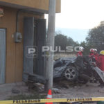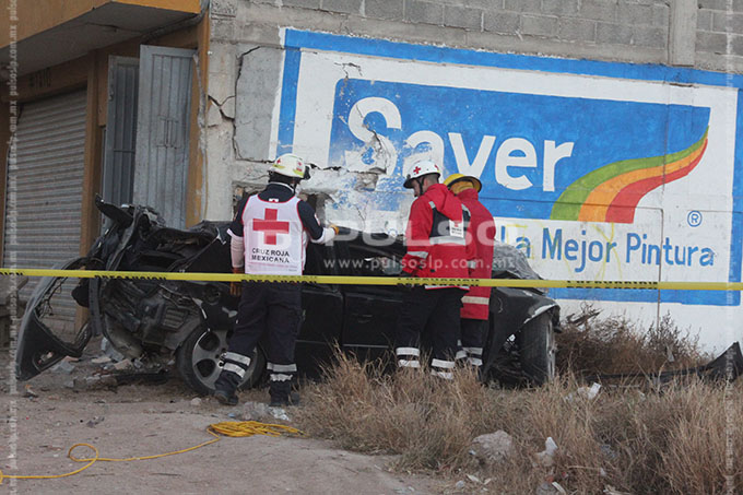 Prensados quedaron los cuerpos sin vida de tres personas, cuyo conductor al transitar sobre la carretera a Zacatecas, perdió el control y terminó por impactarse contra un inmueble.