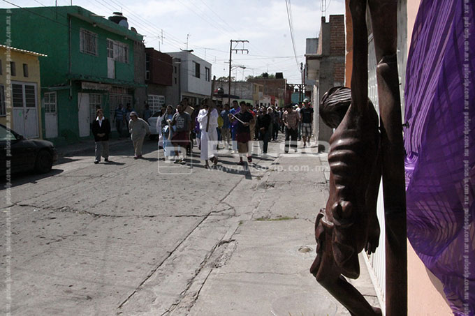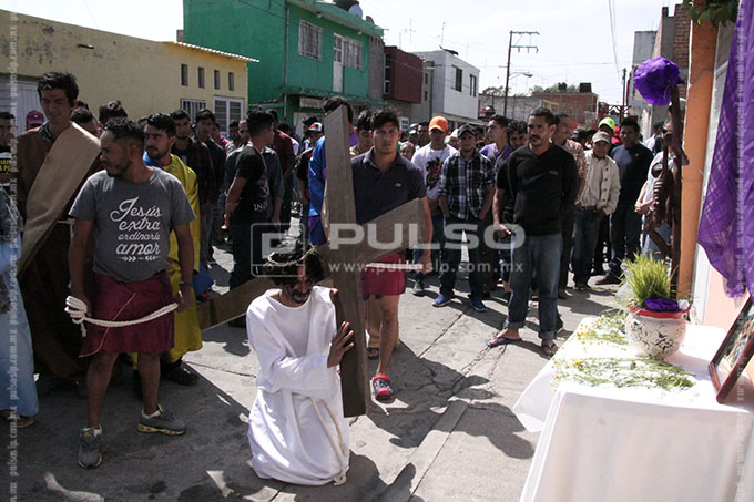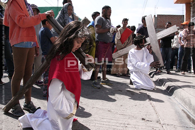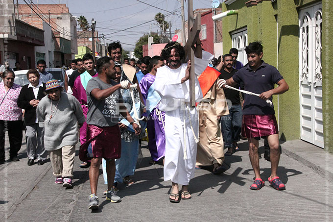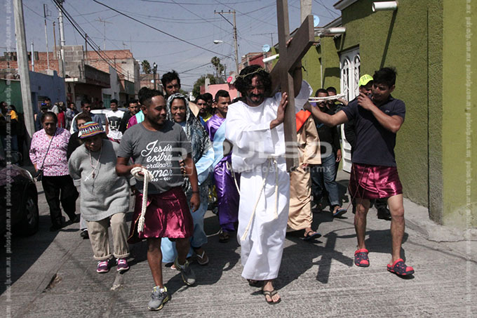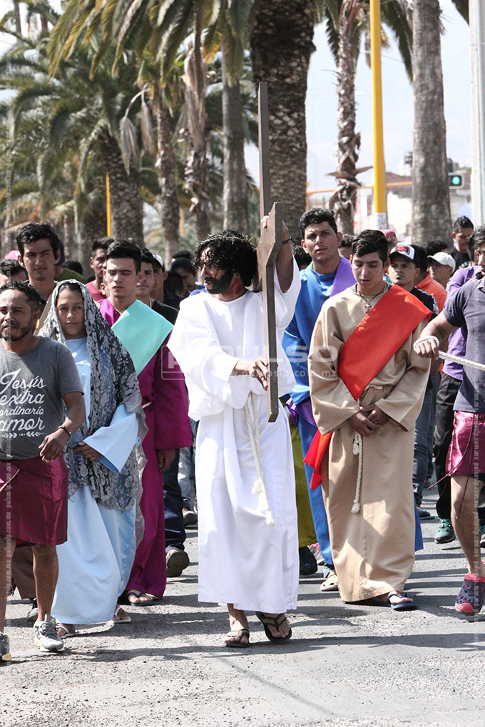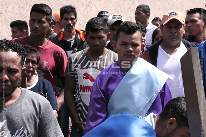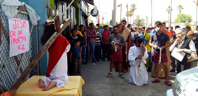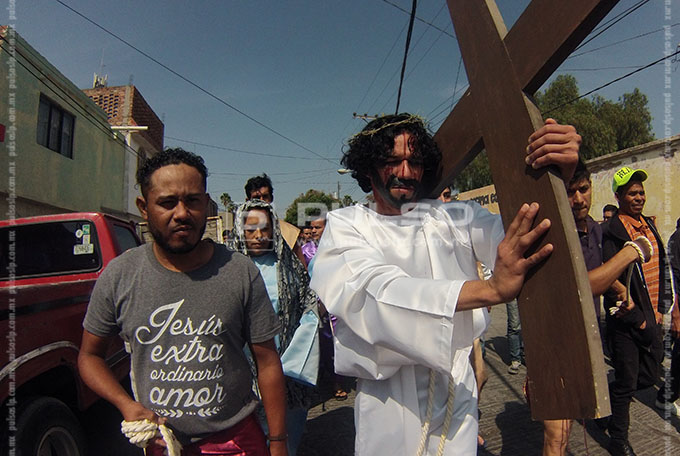 A cientos de kilómetros de sus países natales, alrededor de 80 migrantes centroamericanos representaron está mañana el viacrucis de Jesucristo, en las calles aledañas a la Casa del Migrante, ubicada en el Barrio de Tlaxcala.