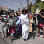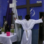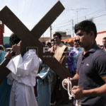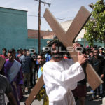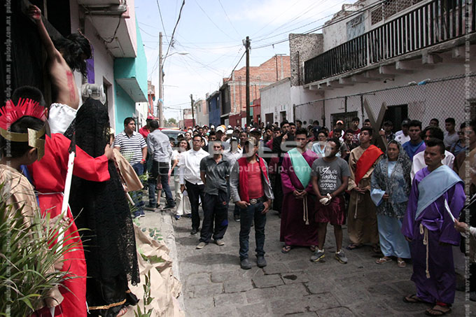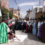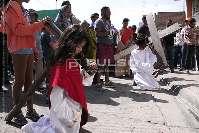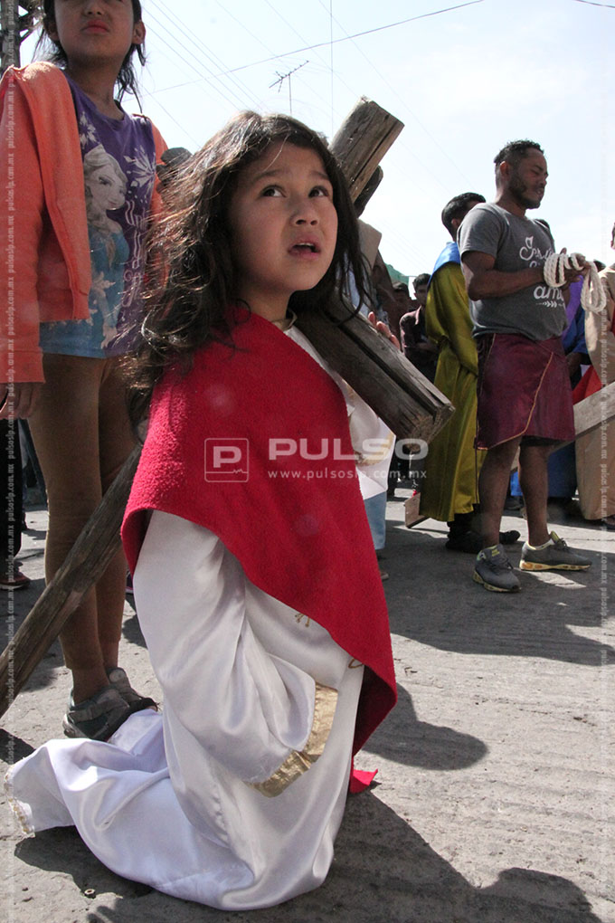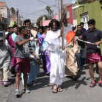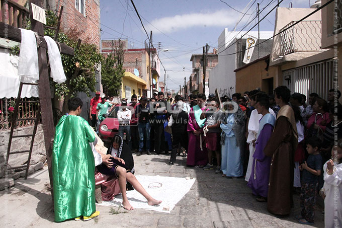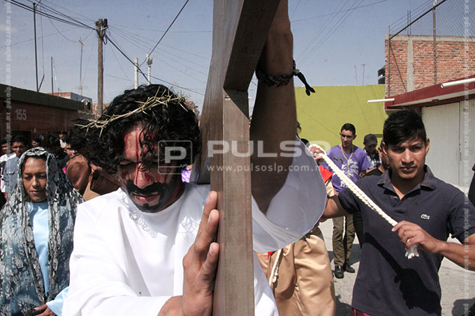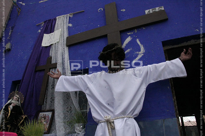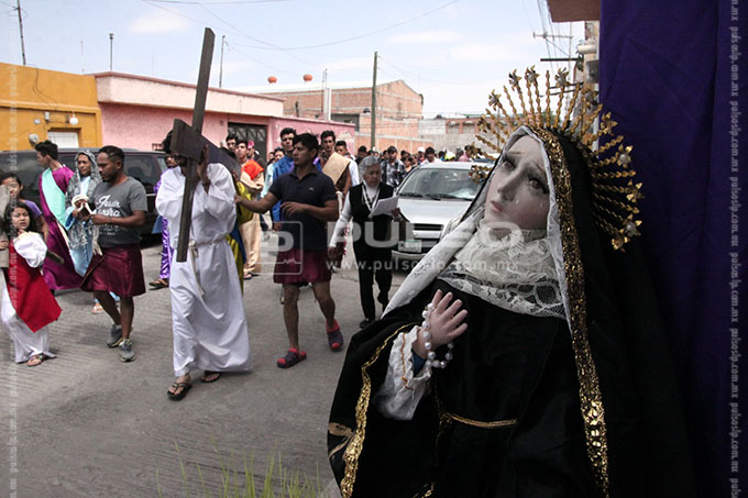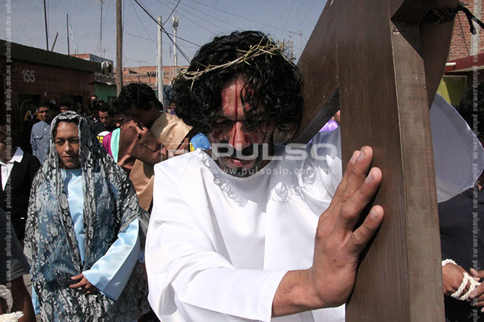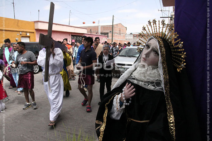 A cientos de kilómetros de sus países natales, alrededor de 80 migrantes centroamericanos representaron está mañana el viacrucis de Jesucristo, en las calles aledañas a la Casa del Migrante, ubicada en el Barrio de Tlaxcala.