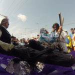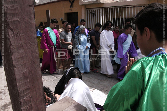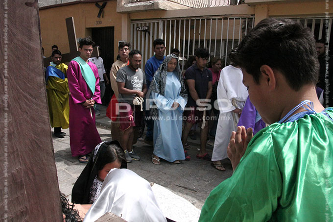 El cúmulo de centroamericanos escenificó las tres caídas de Jesús, cuando la Verónica limpió la cara de Jesucristo, cuando es clavado en la cruz, entre otras escenas de las 14 estaciones.