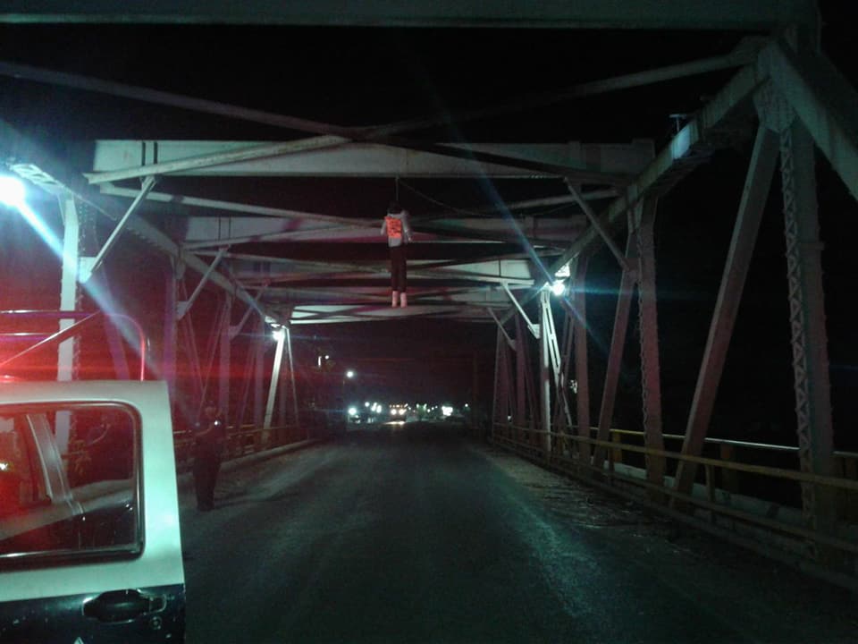 De manera simultánea hubo reportes al Sistema de Emergencias 911 desde las 5 de la mañana, donde mencionaban la aparición de unos muñecos junto a un árbol ubicado en el cruce que conforman la avenida Lalo Torre y la carretera federal Valles-Mante, a unos metros de la planta de ensamblaje Arnecom.