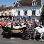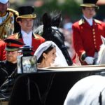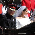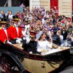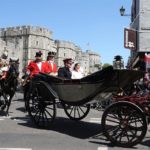 Tras la ceremonia religiosa, que concluyó minutos después de las 13:00 horas locales, los Duques de Sussex abordaron desde el castillo de Windsor el carruaje Ascot Landau, de 1883, que fue jalado por caballos blancos hacia la calle principal del pueblo de Windsor.