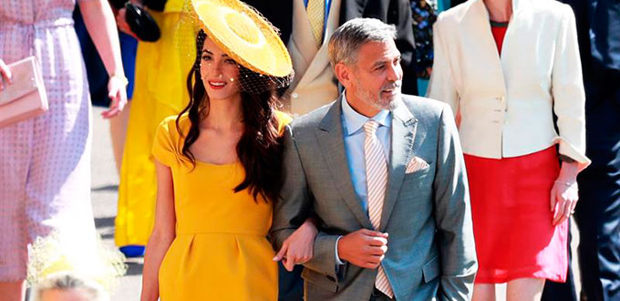 Tanto Victoria Beckham, de 44 años, como Amal Clooney, de 40, se cubrían, tal y como dicta el protocolo, con sendas pamelas en la cabeza, la más llamativa la de la mujer del actor estadounidense, de un amarillo mostaza a juego con su vestido.