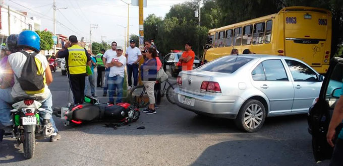 Los hechos se registraron cuando un Jetta en color gris circulaba sobre la avenida Libertad y al dar vuelta en la calle María Teresa chocó con una motocicleta Italika en color rojo con negro, resultado lesionado el joven de 17 años.