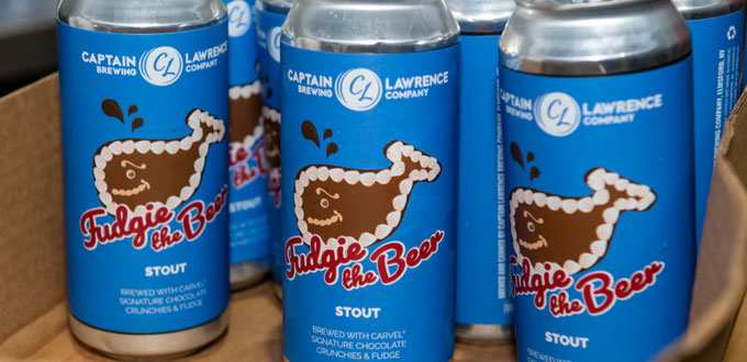 La nueva cerveza del fabricante Captain Lawrence Brewing Company se llama «Fudgie the Beer», en alusión a los ingredientes del pastel de helado «Fudgie the Whale», que tiene la forma de una ballena y es fabricado por la empresa Carvel.