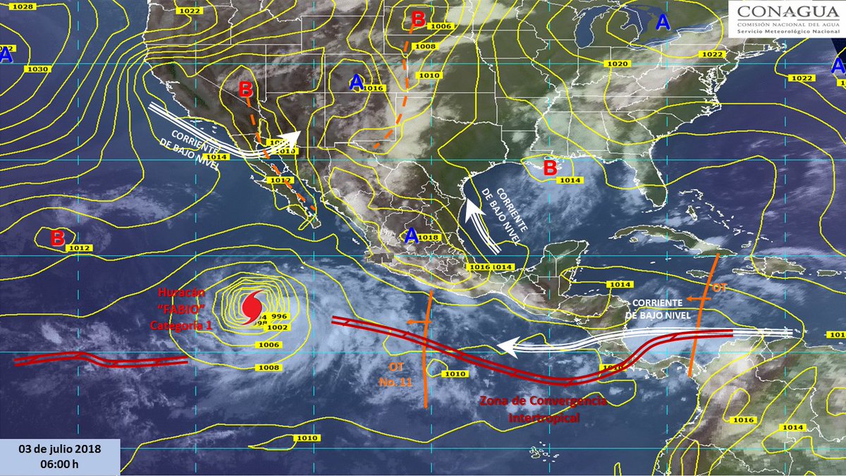 Mientras en el huracán Fabio se desplazará hacia el oeste-noreste, alejándose del territorio nacional, sin afectar costas nacionales.
