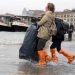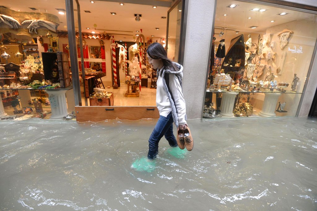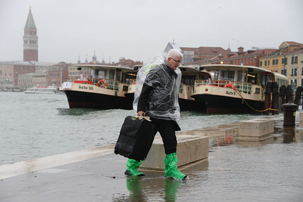 Turistas y vecinos tuvieron que calzar botas altas para recorrer las calles venecianas cuando los fuertes vientos elevaron el nivel del agua a 156 centímetros (más de 5 pies) sobre el nivel del mar antes de retroceder. El agua rebasó incluso las pasarelas elevadas que se colocan en zonas inundadas, lo que obligó a retirarlas. La autoridad de transportes canceló el sistema de autobuses acuáticos salvo a las islas más alejadas.