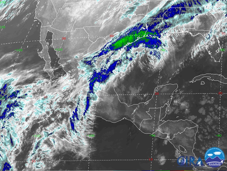 Así como bancos de niebla sobre sierras de la región, además de evento de «Norte» con rachas mayores a 60 kilómetros por hora en el litoral de Tamaulipas y Veracruz.