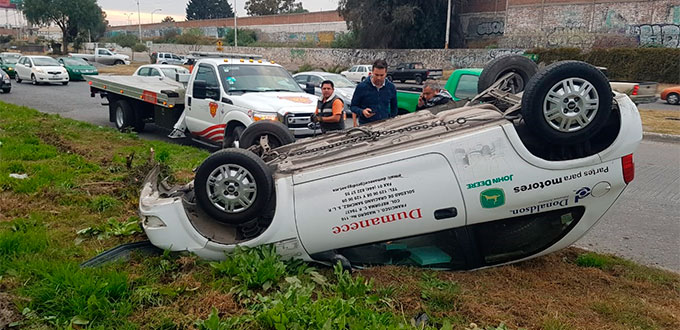 El Bulevar del Río Santiago, a la altura del Ángel de la Independencia, continúa siendo escenario de volcaduras, la tarde de ayer, el conductor de un Chevrolet Chevy, perdió el control de la unidad hacia la izquierda, impactó contra el camellón central y volcó, quedando con los neumáticos hacia arriba.