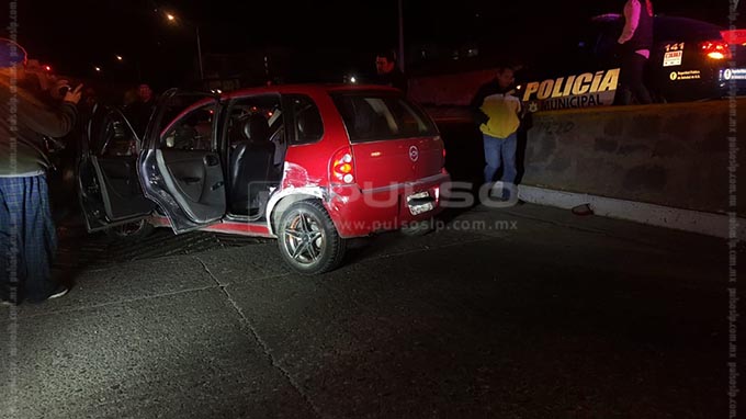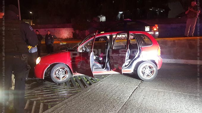 Los hechos se registraron luego de que elementos policíacos de Soledad de Graciano Sánchez iniciaran una persecución en contra de una pareja que presuntamente se dedicaba a robar.