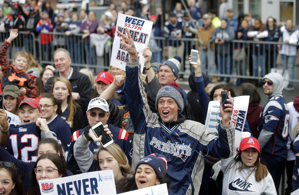 Un ambiente festivo permeaba la ciudad mientras fanáticos que lucían los colores del equipo atestaron las aceras para ver al quarterback Tom Brady, el entrenador Bill Belichick y el resto del equipo.