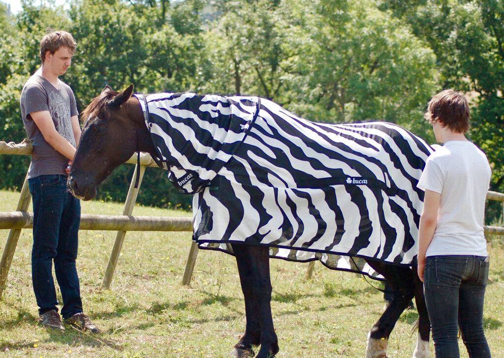 Los investigadores hallaron que los tábanos se paraban con menos frecuencia en los caballos vestidos con los abrigos de rayas que en aquellos sin ellos. Dicen que esta es otra prueba de que las rayas de las cebras ofrecen protección contra los insectos que succionan sangre y que propagan enfermedades.
