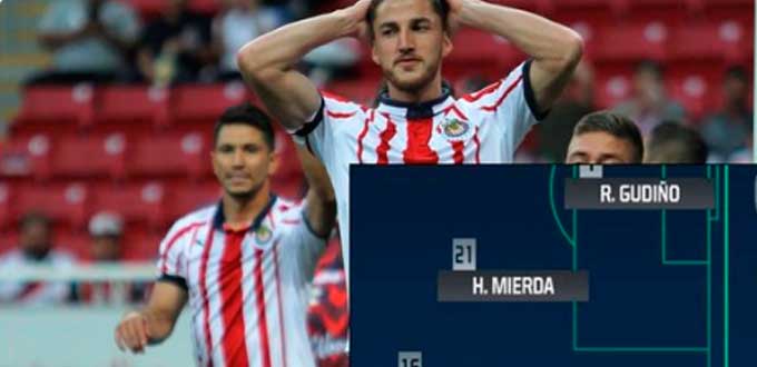 Y es que en el espacio correspondiente al defensor rojiblanco Hiram Mier, se leyó en la pantalla «H. Mierda».